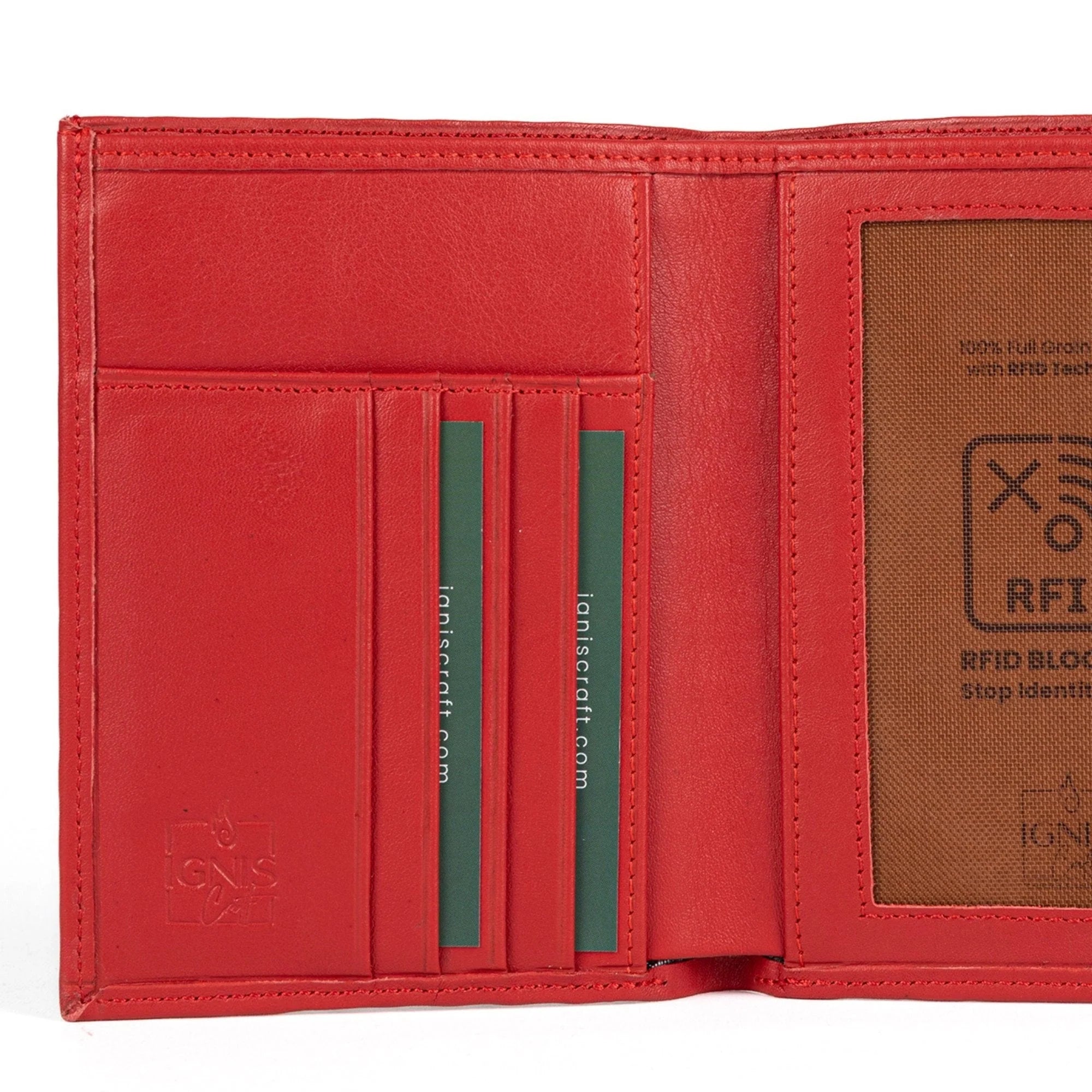 Each **Voyager Ruby Leather Passport Wallet** is meticulously crafted by **IGNIS Craft’s master artisans**, ensuring a **perfect blend of elegance, durability, and functionality**. The **RFID-blocking technology** provides **ultimate security**, preventing unauthorized access to your personal information while traveling.
